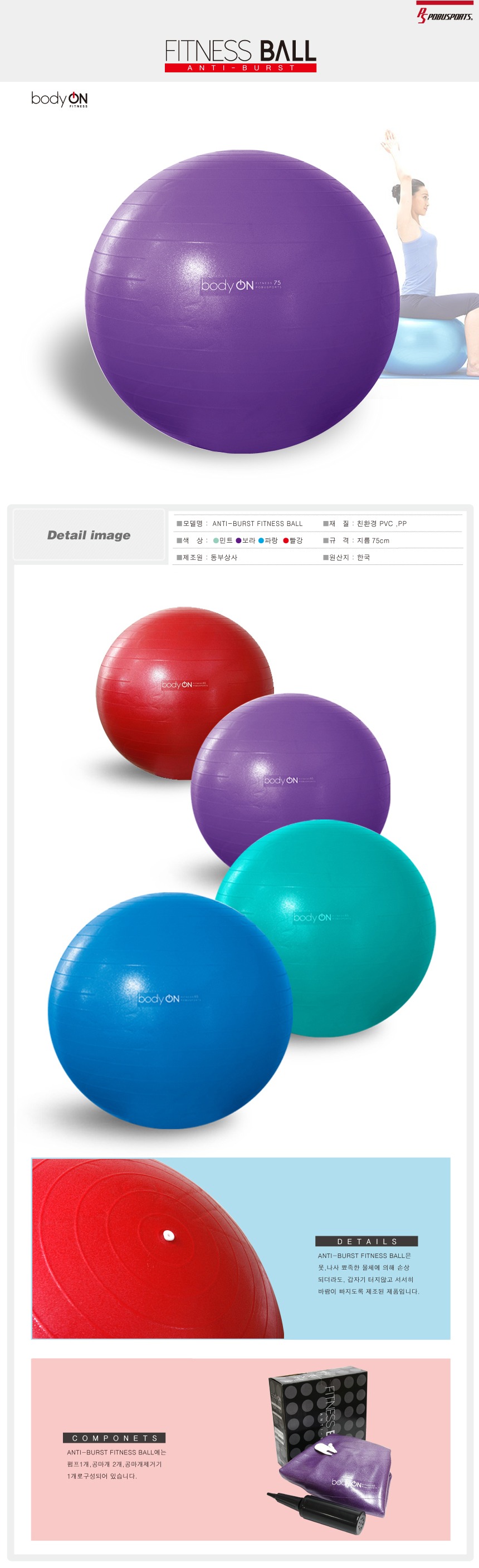 | 제품 구성 | 짐볼, 발 펌프 |