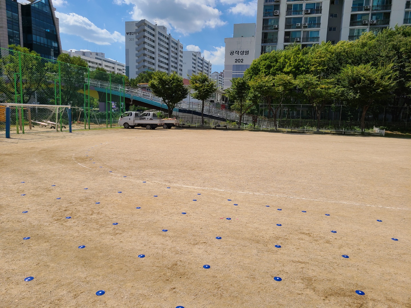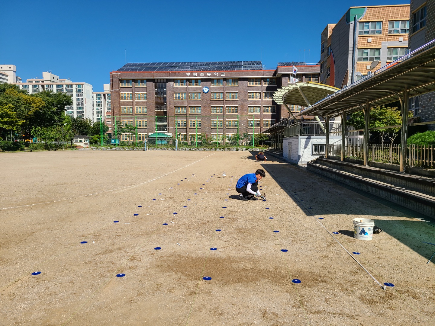 부*초에 운동장 라인 포인트 설치 작업 했습니다